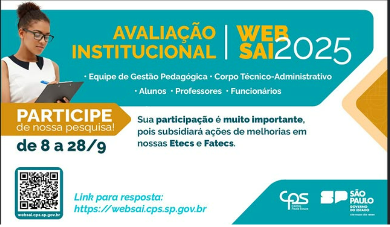 O Centro Paula Souza quer ouvir você! Participe da nossa pesquisa para contribuir com a gestão participativa nas Etecs e Fatecs. Sua voz faz a diferença! 🙌